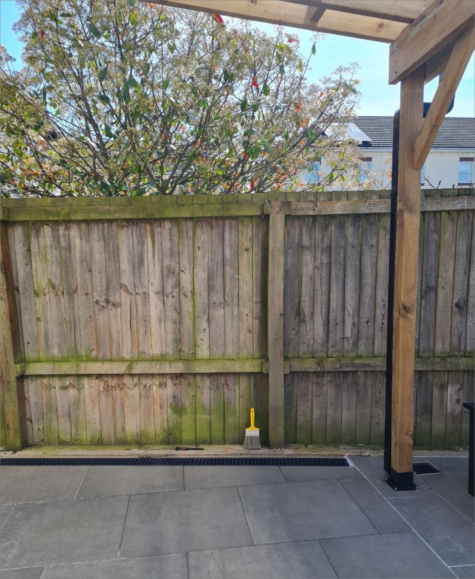 - One coat covers most rough sawn fence panels in a single pass. A second coat only helps on bare timber that has never been treated, where the first coat soaks in and leaves the colour patchy.